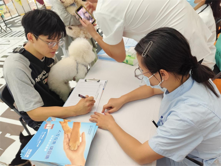 本次活动除了给与狗狗免费注射狂犬疫苗外,也对前来了解的宠主或其他人进行了预防狂犬病的宣教活动,活动期间对市民发放宣传人宠共患病寄生虫的危害和预防单页,狂犬病的预防相关知识,提升公众对犬只习性的了解,有助于减少被犬所伤。及时被无意受伤也理解基础的处理办法。