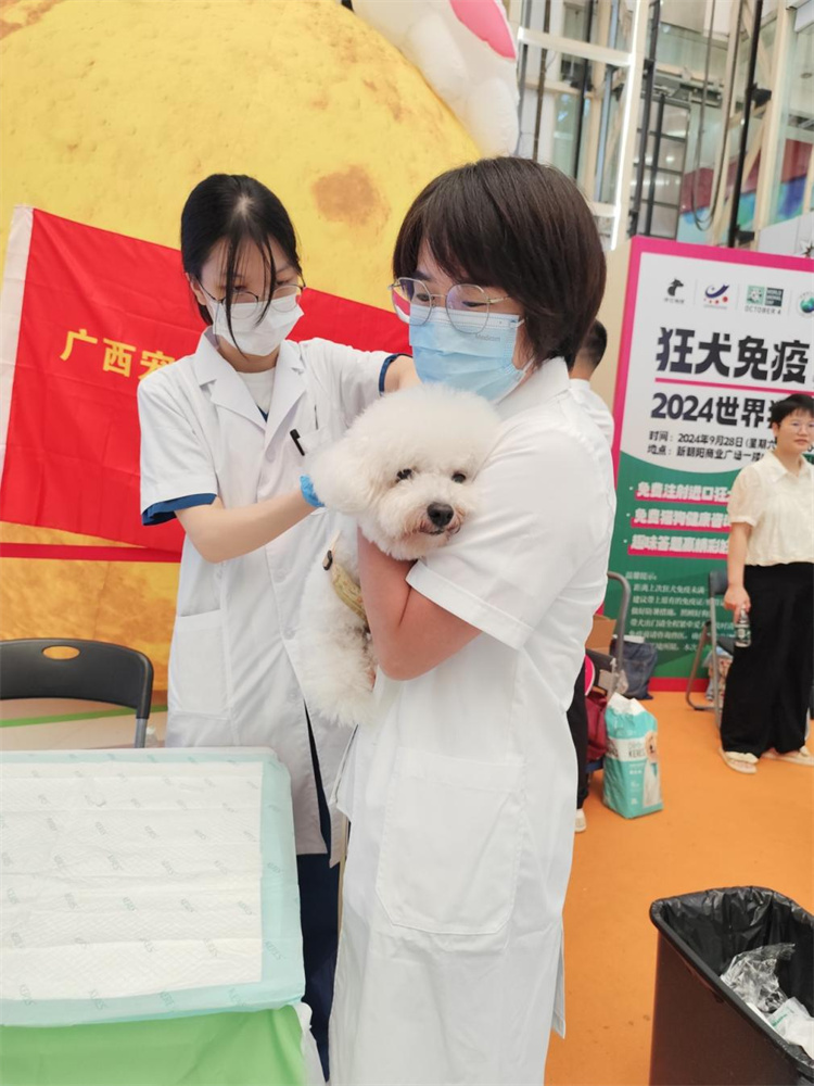 2024年9月28日,是第十八届世界狂犬病日,广西宠物诊疗行业协会党支部携手伴它地球公益组织在新朝阳商业广场举办了一场狂犬病科普宣传及免费注射狂犬疫苗公益活动:此次活动所用疫苗由广西安和天成宠物有限公司及南宁润合宠物供应链集团有限公司免费提供,给毛小孩们送一份福利。